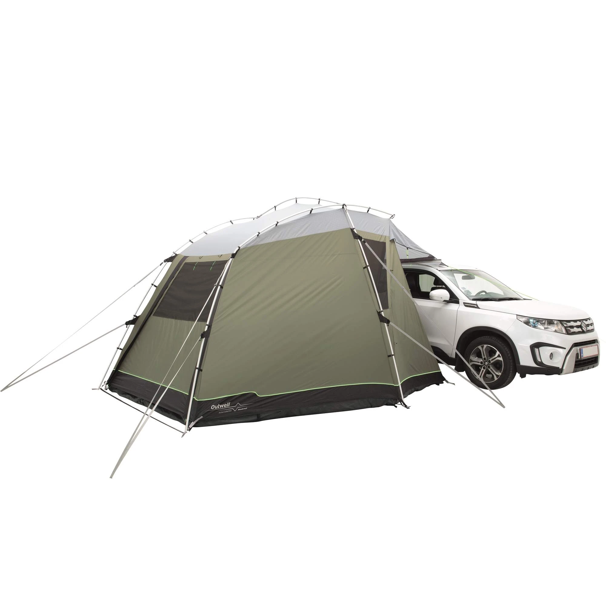 Wie bereits erwähnt, ist das Woodcrest selbstehend, sorgt also im Urlaub für ein maximales Maß an Unabhängigkeit. Wenn tagsüber Ausflüge mit dem Van auf der Tagesordnung stehen, kann die Ausrüstung im Zelt verstaut werden. Und auch wenn es regnet, brauchst du dir dank der Wassersäule von 3000 mm keine Sorgen zu machen, abends einen nassen Hintern zu bekommen.